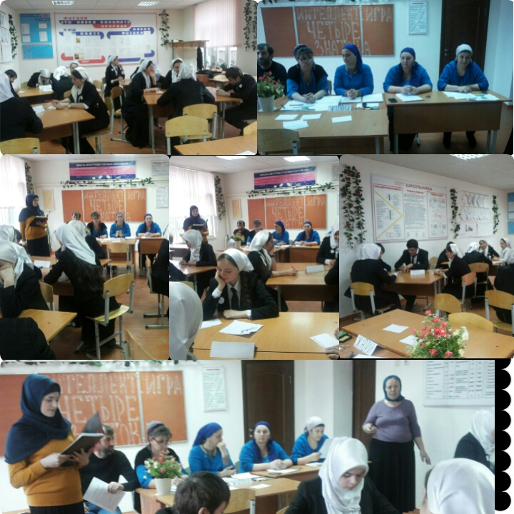 1. Команда «Эрудиты» - учащиеся 11 «А» класса. 2. Команда «Умники» - учащиеся 10 «А» класса. 3. Команда «Эврика» - учащиеся 9 «А» класса. 4. Команда «Знатоки» - учащиеся – 9 «Б» класса. Жюри в составе: Сембаева М.У. –председатель, Исмаилова Р.С., Саралиева З.И., Заурбекова З.У., Хасханов М,Т. определило лучших игроков, из которых была составлена команда знатоков. В состав команды вошли: 1. Хайдаров И. –11 «А» класс, Жамулаева Л – 11 «А» класс, Расламбекова А. – 9 «А» класс, Дубаева Л. -9»Б» класс. Эта команда будет участвовать в районном этапе игры.