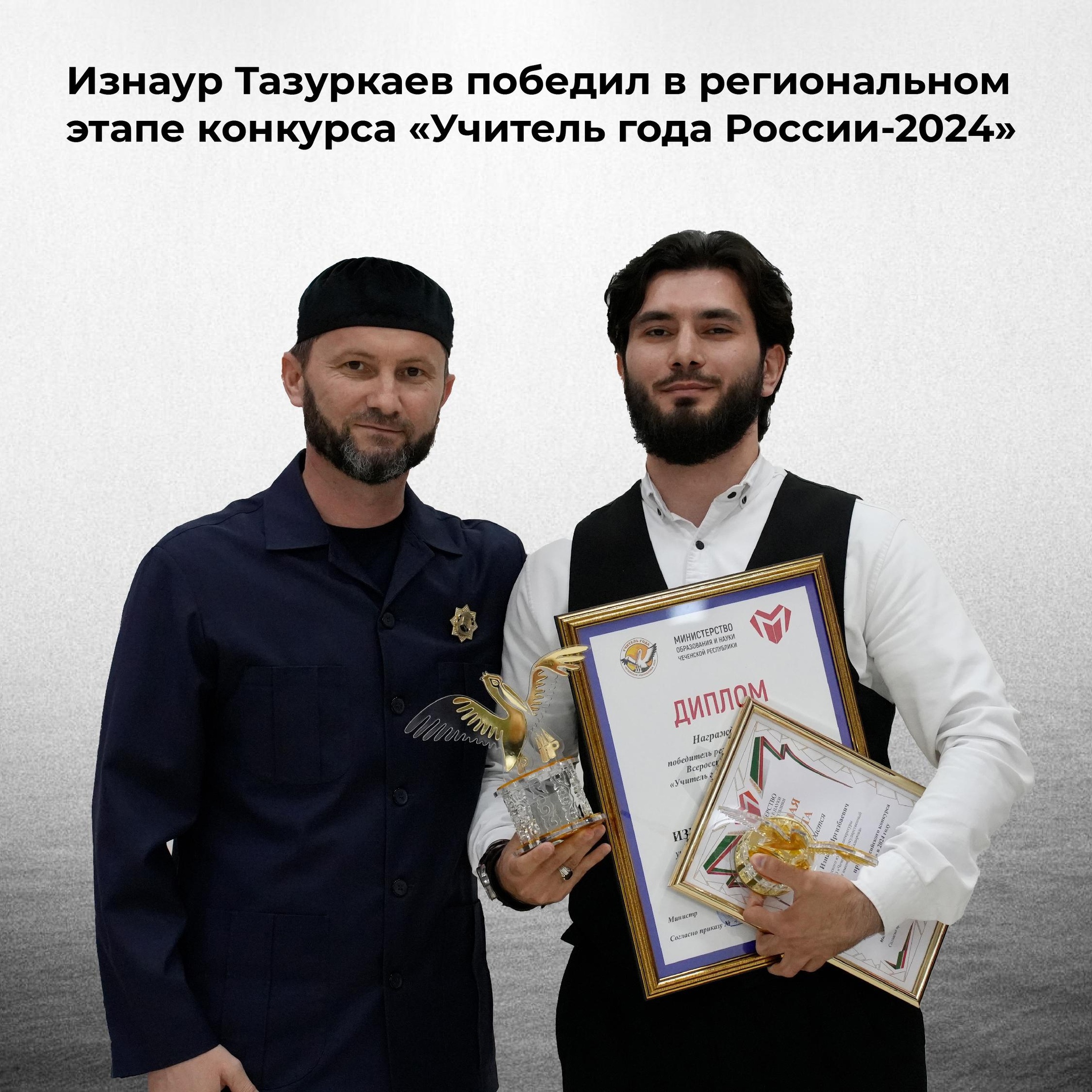 27.05.2024Учитель русского языка и литературы лицея ЧГУ им. А.А. Кадырова Изнаур Тазуркаев стал победителем регионального этапа всероссийского конкурса «Учитель года России-2024». В ЧГУ выразили радость за успех сотрудника и подчеркнули значимость участия в подобных конкурсах.«Победа нашего учителя — это большое событие в жизни университета и всего региона. Благодаря таким молодым и талантливым педагогам, ищущим себя в профессии, мы строим будущее», - отметили коллеги педагога.Следующим этапом для Изнаура Тазуркаева станет участие во всероссийском этапе конкурса «Учитель года России-2024», который состоится осенью.