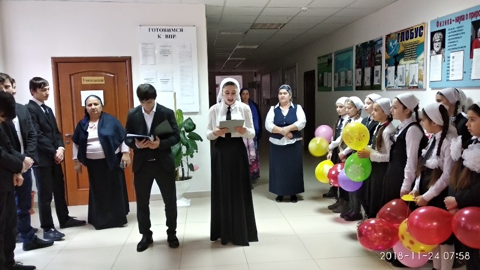 24.11.2018В МБОУ «СОШ №3 с. Гехи им. А-Х. Кадырова» проведена линейка, посвященная Дню Матери с учащимися 5-10-х классов. Мероприятие позволило ребятам ознакомиться с историей праздника, со значением в нашей жизни главного человека – Матери. Поддержать традиции бережного отношения к женщине, закрепление семейных устоев и выражение почтения, уважения их к труду, мужеству и просто любви к Матери.
